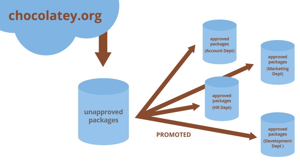 Chocolatey lets you automate your software installations, updates, and maintenance across a company network, as a self-service solution. Creating internal package repositories and implementing package approval workflows will also help you keep in check who installs what in your organization.