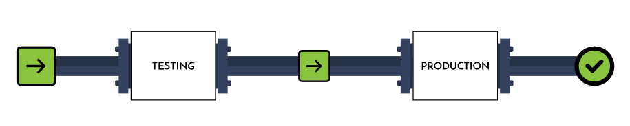 For example, a basic web application might use a pipeline with only two stages (testing and production), and simply deploy to a different folder on the same server.