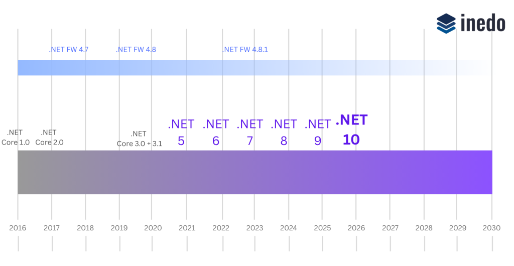 Microsoft’s .NET 5 was released on 10 November 2020 and had some major changes compared to .NET Framework. Since then, there have been several releases every year. The latest version, .NET 10, arrived in November 2025.