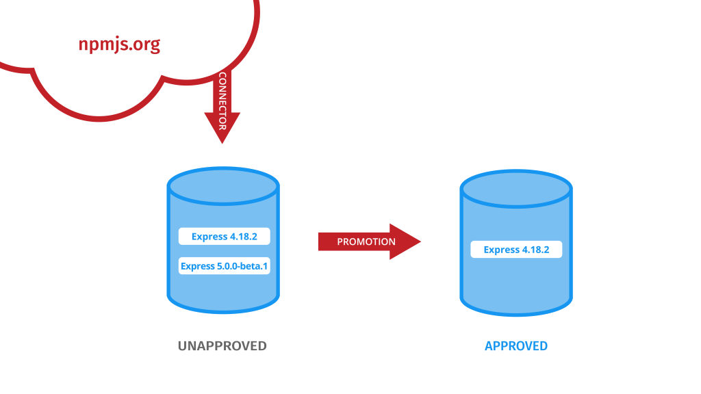 You’ll want to connect the unapproved feed to npmjs.org. This will proxy OSS npm packages directly from npmjs.org. Once that’s set, create two feeds so you’ll be able to promote packages from one to the other.