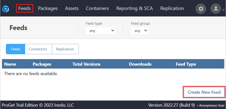 To get a package approval flow up and running, you’ll need to create two npm feeds—one for unapproved packages and another for promoted, approved packages. Start by going to the feeds page and creating a new feed.