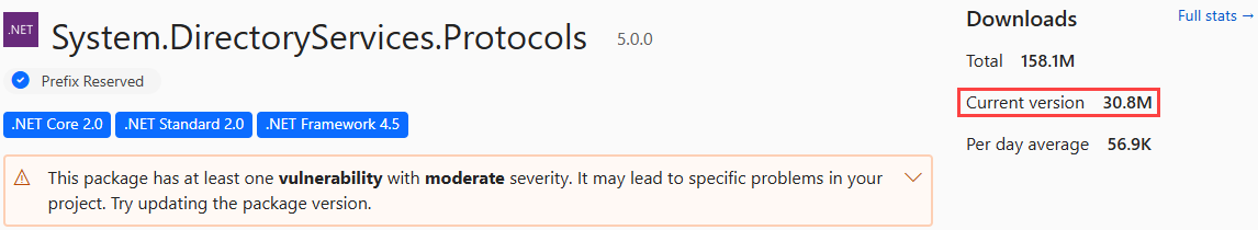 By the way… If you were wondering about that System.DirectoryServices.Protocols package, it’s not just an example for theoretical purposes. Back when System.DirectoryServices.Protocols was in version 5.0.0, it was downloaded around 17.6M times before it was discovered to have a vulnerability, and the download number has risen to 30.8M since then!