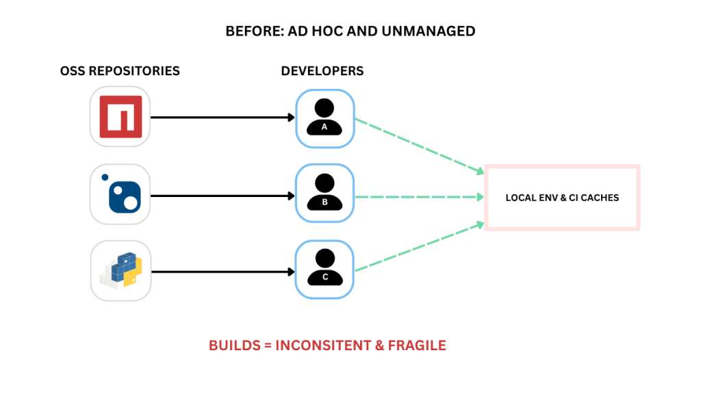 Pulling these risks makes your CI/CD pipeline fragile, the friction felt by frustrated developers, tasked with constant debugging and untangling dependency conflicts and version mismatches, all in an effort to replicate unreproducible environments.