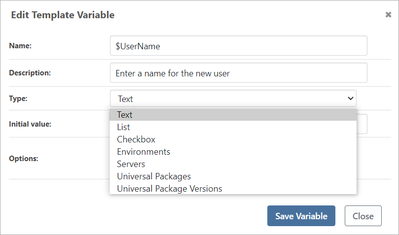 - Create your variable using the parameters you desire.