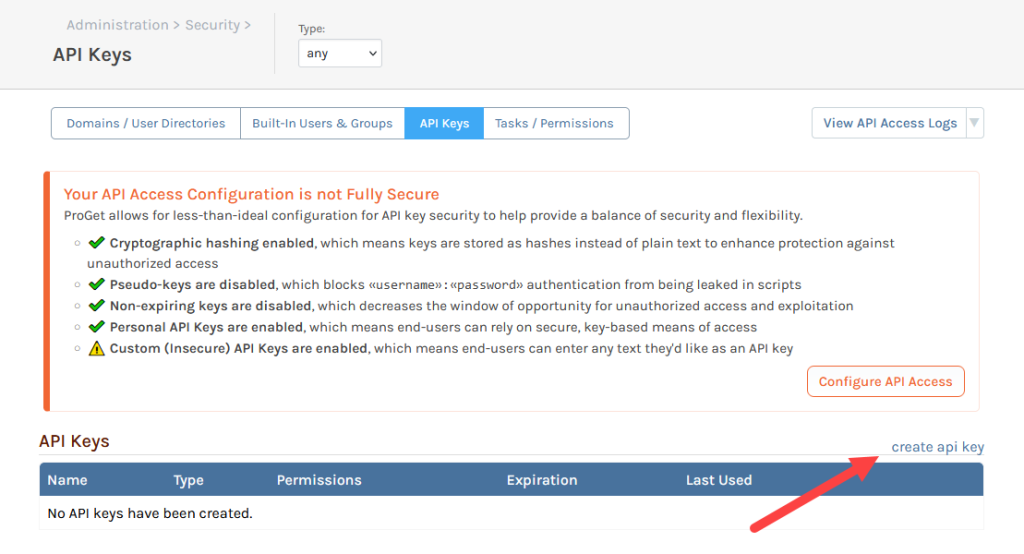 ProGet also uses API Keys to manage feeds, packages, SCA, and other features. For anyone migrating to ProGet, you can take your Artifactory keys and use them with similar permissions, without the need to generate new ones.