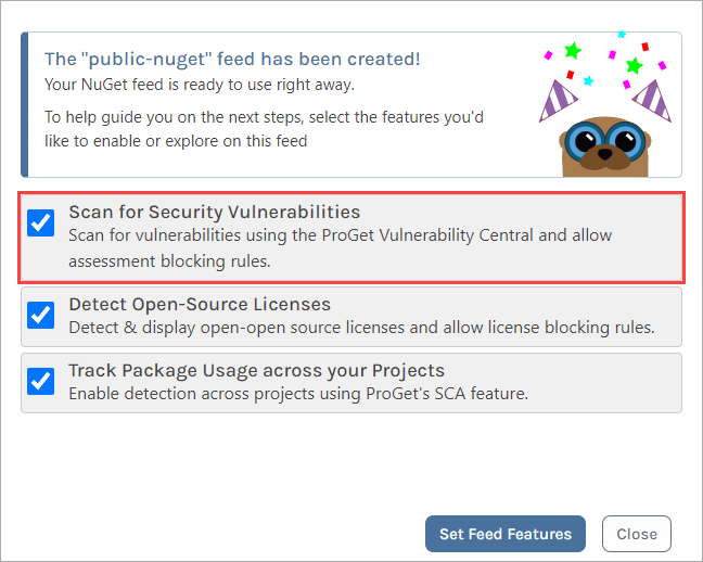 But while Artifactory repositories are automatically configured for scanning, ProGet users can configure this themselves when the feed is created.