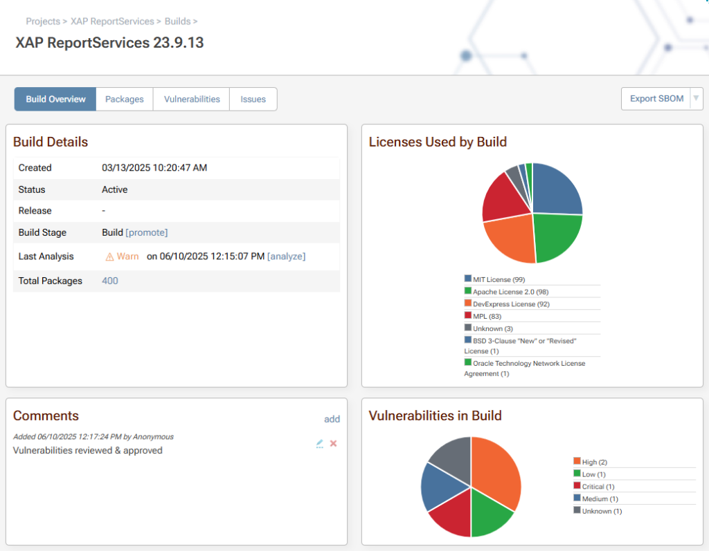 ProGet takes a different approach. SCA is built into the product itself, with no extra server, no external service, and no syncing across tools. Policies, scanning, reporting, and SBOMs all live in one place, which simplifies the workflow and reduces overhead.